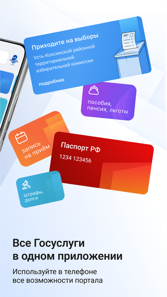 Госуслуги is an official state services application. It allows you to access information about state and municipal services in the Russian Federation.
